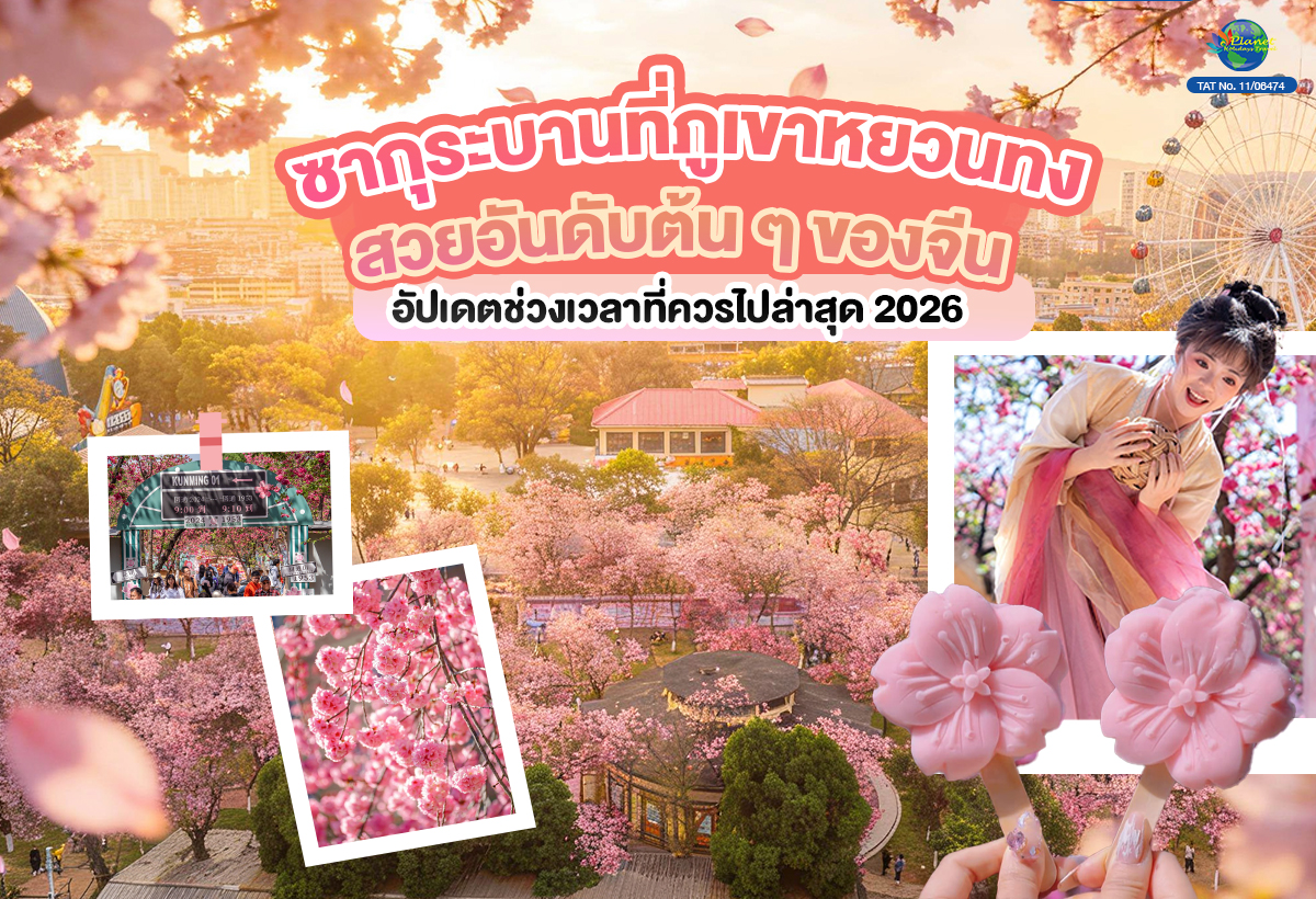 บทความนี้ planetholiday ขอพาทุกคนไปรู้จัก หนึ่งในจุดชมซากุระที่สวยและฮิตที่สุดของคุนหมิง นั่นก็คือ ภูเขาหยวนทง 🌸 ทุก ๆ ปีในช่วงฤดูใบไม้ผลิ ที่นี่จะเต็มไปด้วยดอกซากุระสีชมพูอ่อน บานสะพรั่งทั่วทั้งพื้นที่ จนกลายเป็นจุดหมายยอดนิยมของคนที่อยากมาเที่ยวคุนหมิง และอยากเห็นซากุระในบรรยากาศที่แตกต่างจากญี่ปุ่น ถ้าคุณกำลังวางแผน ทริปคุนหมิง และกำลังสงสัยว่า ซากุระภูเขาหยวนทงบานช่วงไหน ไปเดือนไหนสวยที่สุด บทความนี้เราสรุปให้แบบเข้าใจง่าย อ่านจบรู้เรื่องเลยค่ะ