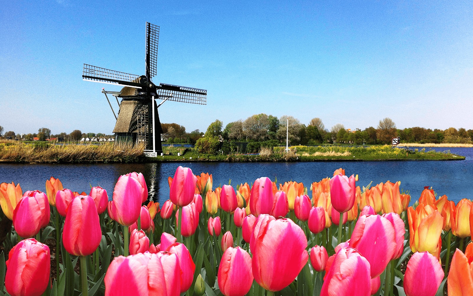 1.กังหันลมโบราณ (The Windmill): จุดแลนด์มาร์คที่ต้องเช็คอิน! ขึ้นไปชมวิวมุมสูงมองเห็นทุ่งดอกไม้กว้างสุดลูกหูลูกตาและคลองขนาดเล็กที่ตัดผ่านทุ่งนา