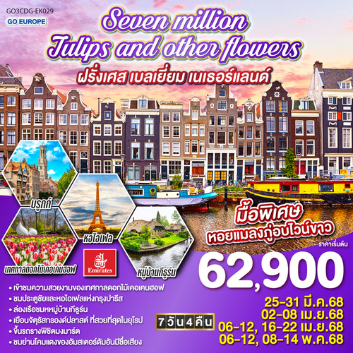 ทัวร์ยุโรป ฝรั่งเศส เบลเยี่ยม เนเธอร์แลนด์ เปรียบอัมสเตอร์ดัมเพชรน้ำหนึ่ง หวานปานน้ำผึ้งเดือนห้า (EK)